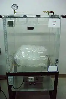 2. A laboratory vacuum places controlled stress on a sealed package to test the strength of seals, the tendency for leakage, and the ability to retain sterility.