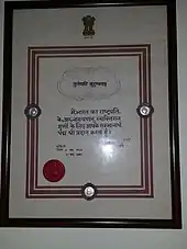 Several intended recipients, including musician Hemanta Kumar Mukherjee, sitar player Vilayat Khan,[7] academic and author Mamoni Raisom Goswami,[8] journalist Kanak Sen Deka[9] and noted Bollywood screenwriter Salim Khan, have declined the Padma Shri for various reasons.[10] Some intended recipients, such as environmental activist Sunderlal Bahuguna[11] and English billiards champion Michael Ferreira,[9] have refused the honour but have subsequently accepted a more prestigious one such as the Padma Bhushan or Padma Vibhushan. Other individuals, such as film-maker Aribam Syam Sharma,[12] author Phanishwar Nath 'Renu',[13] Punjabi author Dalip Kaur Tiwana[14] and noted poet Jayanta Mahapatra,[15] have returned the honour after initially accepting it.