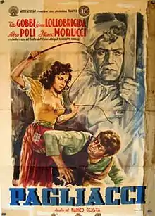 Love of a Clown, or Pagliacci, is a 1948 Italian film based on Ruggero Leoncavallo's opera Pagliacci, directed by Mario Costa. The film stars Tito Gobbi and Gina Lollobrigida. It recounts the tragedy of Canio, the lead clown (or pagliaccio in Italian) in a commedia dell'arte troupe, his wife Nedda, and her lover, Silvio. When Nedda spurns the advances of Tonio, another player in the troupe, he tells Canio about Nedda's betrayal. In a jealous rage Canio murders both Nedda and Silvio. The only actor in the cast who also sang his role was the celebrated Italian baritone, Tito Gobbi, but the film is largely very faithful to its source material, presenting the opera nearly complete.