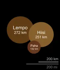 The trinary system's other two components, Paha /ˈpɑːhɑː/ and Hiisi /ˈhiːsi/, were discovered in 2001 and 2007, respectively, and later named after Lempo's two demon cohorts, Paha and Hiisi.[12]