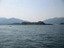 Pak Sha Chau (centre) viewed from the South. Siu Tsan Chau is the small island on the right.