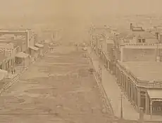 A view of the Excelsior Hotel on Bourke Street in 1861