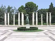 In 1930, once the exposition was over, it was proposed to locate the Barcelona Music Museum in the palace. The project did not prosper but the Board of Museums proposed the construction and placement of a bust in honor of the musician, composer and pianist Isaac Albéniz. The City Council gave its approval and from that moment the Royal Pavilion of Montjuic has been known as the Palacete or Palauet Albéniz. This bust was sculpted by the Enric Casanovas and Mateu Fernández Soto.
