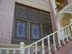 The total area of the Khan Palace is 382 m² and thickness of its walls vary from 60 cm to 1.1 m. The building was built with baked bricks of 20x20x5 cm. The windows have network styles and all rooms have all sizes of niches Nakhchivan residential houses used. There are 3 rooms on the 1st floor, 8 rooms (2 halls) on 2nd floor and 2 attics on the ornaments that are used as rooms. Both mansions have access to open balconies over the corridors. In the western part of the hall designed for guests, a 40 cm height stage type couch was built. The open windows of the wooden beam are decorated with nets and ceilings with small mirrors. Other walls of the hall have been designed with trunks, fountain and plot illustrations. In the course of many repairs and restoration works, the paintings were damaged or covered with plaster. The southern wall and its surroundings are decorated with geometrical shapes and mirror pieces. The building was warmed by two steamers placed on the walls.[2]
