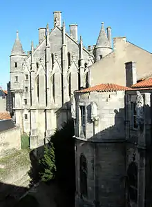 In 1384–86 Jean I, duc de Berry, who was also appanage count of Poitiers, rebuilt the part of the palace which had been destroyed by fire. On the one hand, the donjon and the ramparts were reconstructed; on the other hand, the private apartments were restored in the Gothic Flamboyant style by Jean's court architect and sculptor Guy de Dammartin. These works were undertaken between 1388 and 1416, during pauses in the course of the Hundred Years' War.[4]