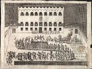 King Philip IV confiscated the building in 1652 and purposed it to serve as the new residence of the Viceroy of Catalonia (also known as Lieutenant) moving from the Palau del Lloctinent. By order of Viceroy Vicente Gonzaga Doria a new palace was constructed between 1668 and 1688. The architect was Josep de la Concepció, a Carmelite monk, who designed a baroque building. The palace had a quadrangular plan with a central courtyard, three levels with balconies and a facade with Gothic elements. Of the interior, the main hall, called Sala de Festes, stood out, with a rectangular floor plan and two floors high. In 1700, by initiative of viceroy Prince George of Hesse-Darmstadt a connection was added to the Santa Maria del Mar church. During the War of the Spanish Succession Archduke Charles of Habsburg was installed as king of Spain in the building in 1705. Three years later, he married Elisabeth Christine of Brunswick-Wolfenbüttel in the Santa Maria del Mar in 1708. They resided in the palace until 1711, when they left for Vienna in Austria. With the Nueva Planta decrees the office of the viceroy was abolished, and the palace became the residence of the Captain General of Catalonia. The palace got a façade in a neoclassical style in 1771, designed by the architect Juan Miguel de Roncali.