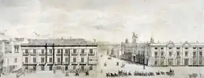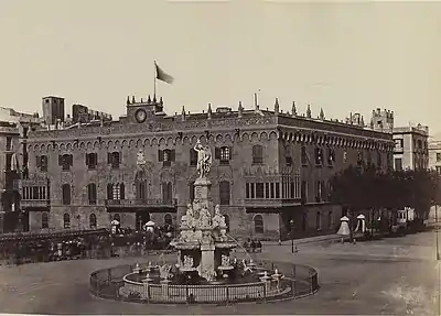 The building had its origin in a woolen port warehouse of medieval times, until it was converted into a palace in 1652 and became the official residence of the viceroys of Catalonia. It became the Royal Palace and residence of the Spanish Royal Family in Barcelona in 1844. It was destroyed by a fire in 1875.