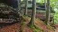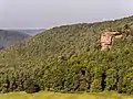 The Palatinate Forest Nature Park (German: Naturpark Pfälzerwald) lies in the south of Rhineland-Palatinate in Germany and borders on France. The nature park covers an area of 177,100 hectares (684 sq mi) and some 76% of its area is under the woods of the Palatinate Forest, the largest contiguous forest region in Germany. Together with parts of northern Alsace and Lorraine, it forms the Palatinate Forest-North Vosges Biosphere Reserve and has an impressive Bunter sandstone landscape.