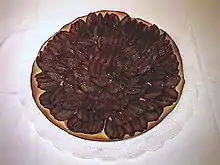 During plum season a common main dish is "Grumbeersupp und Quetschekuche" which is potato soup and plum cake and for dessert Kerscheplotzer is served. Another seasonal dish is Zwiebelkuchen which is commonly served with Federweisser in autumn.