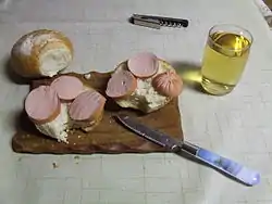 A traditional snack which exists mainly because of the working men in vineyards is Weck, Worscht un Woi (bun, meat and wine).