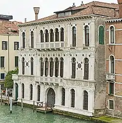 The Contarini dal Zaffo family,[4] which owned many other famous palazzos, rebuilt the structure between 1562 and 1582 without altering its exterior. The palazzo was named after Giorgio Contarini, who was Count of Jaffa (Zaffo) in Palestine. Since 1758, the building was owned by several wealthy families: first by the Manzoni, then by the Angaran, and then by the Polignac. In 1901, the building was bought by Winaretta Singer, who was the daughter of Isaac Singer and the Princess of Polignac.[5][6] Because of the Polignac's ownership, the palace bears its double name of Contarini Polignac. When the palazzo was the residence of the Princess of Polignac, it became the site of a great intellectual salon, hosting important personalities in the field of the arts (especially music), like Igor Stravinsky. Today, the palazzo is still a private residence and a property of the Polignac family; it was restored between 2004 and 2007.