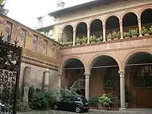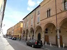The Palazzo Fontanelli Sacrati, also known as the Palazzo Terrachini or Terracini or just Sacrati, is a Gothic and Renaissance-style palace with a main facade located on Via Emilia San Pietro #27 in the historic center of the town of Reggio Emilia, region of Emilia Romagna, in Italy. It is now used for private and cultural events.