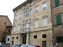 The palace has an elegant facade with a giant order of pilasters starting atop a rusticated base with Palladian windows and busts in the niches. The palace was designed in 1799-1804 by Stefano Belli. It is presently a private residence.[1][2] There is a 17th-century Palazzo Incontri Piccolellis in via dei Servi 3- 5 in Florence.
