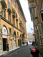 ![]() Palazzo Muti (ochre-coloured building) with (right) the arcaded Basilica dei Santi Apostoli where the Stuarts regularly worshipped | |