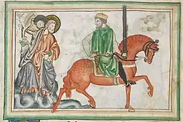 The second Horseman, War on the Red Horse as depicted in a thirteenth-century Apocalypse manuscript.