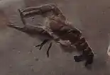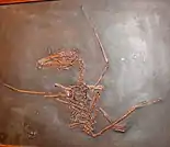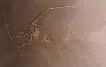 - The genus Clarkeiteuthis and its predatory behaviour, found associated with fishes of the genus Leptolepis.[9] Based on the position of prey and predator, was suggested that the coeloid cephalopods caught and killed the fishes while the schools still in well-oxygenated waters and then descended into oxygen-depleted water layers where the cephalopod suffocated and died attached to its prey.[9] The fish measured 12 centimetres (4.7 in), while the coeloid 21 and it was measured by the fossilized arms of 14 specimens of coeloids that the hunting specimens arms where contracted over the fish, probably quickly killing it by cutting its spine.[9]