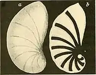 A benthonic Foraminiferan, member of Vaginulinidae inside the family Vaginulinida (Lagenina). An extant genus. Its shell resemble a mixture between an ammonite conch, due to having a lower spiral, and a mussel. |
