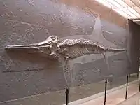 - Specimen SMNS 53363 (Eurhinosaurus?) from Aichelberg was found with two encrusted large oysters (Liostrea) on the right pterygoid, considered to be part of a reef stage over bones.[8]