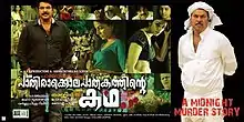 Paleri Manikyam: Oru Pathirakolapathakathinte Katha (transl. Manikyam of Paleri: A Midnight Murder Story) is a 2009 Indian Malayalam-language mystery film written and directed by Ranjith, starring Mammootty, Shwetha Menon and Mythili. It is based on the novel of the same name by T. P. Rajeevan,[1][2] which said the true story of the first recorded murder case in Kerala.[3] Mammooty plays three characters in the film. The film was Mythili's debut in cinema. Ranjith also introduced about thirty Malayalam stage artists through this film.[4][5] The film tells the story of a private detective, who returns to his birthplace, a village called Paleri, to solve a murder mystery that occurred on the same night he was born. Upon the release of the movie, it got an 'A' certificate due to its violent and adult content.