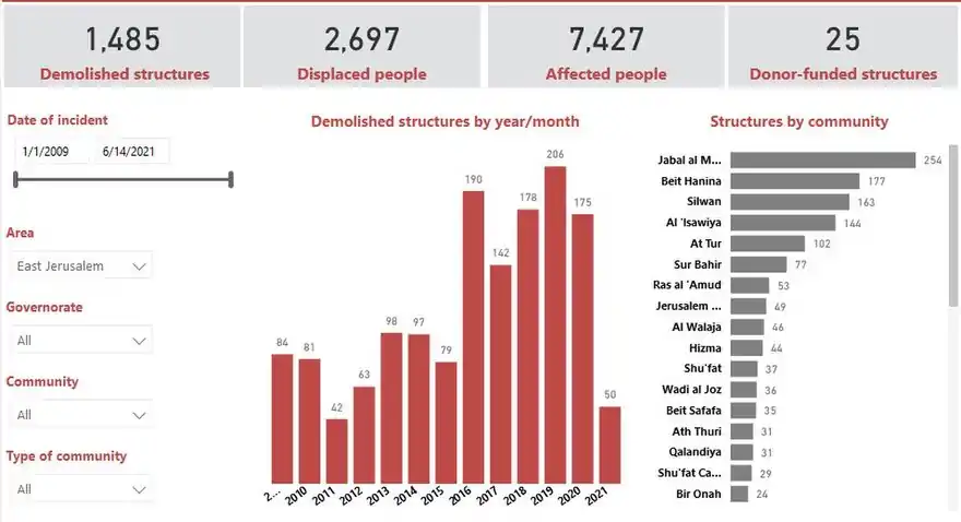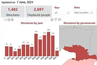 In 2020, the 170 demolitions in East Jerusalem was the second-highest number of demolitions after 2016 since the UN began recording in 2009.[49]