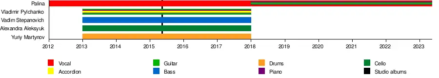 In February 2017 the singer was a guest of Siarhei Budkin’s program "Belsat Music Live", where she acted in a new stage format without a guitar and her musical band.[19] In that year she performed the back vocal part on the Helaiv's song "Anxiety" from the "Too Easy" EP.[20]