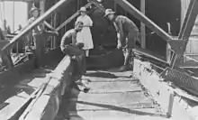 The dredge was erected under the supervision of Mr William Condron, consulting engineer for Ruwolt Pty Ltd, and Mr Walter Baker, the dredging company's General Manager. The dredge was capable of treating 50,000 cubic yards per month and had 31 buckets of 5 cubic foot capacity. Dredging operations commenced at the end of December 1930 and were carried on into the wet season. However a photograph in 1932 (John Oxley Library: neg. 31/31) shows the dredge partly submerged and damaged by floodwaters. The date that the dredge ceased operation and was finally abandoned has not been confirmed.[1]