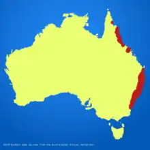 The anchor vine is widespread in rainforest from Batemans Bay in southeast New South Wales to the McIlwraith Range on Cape York Peninsula, Queensland, at altitudes from near sea level to 1,500 m (4,900 ft).[4][5][6] There is also a single recorded occurrence of this species in New Guinea.[9]