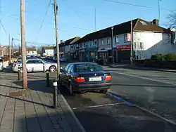 The spelling "Palmerston" rather than "Palmerstown" was fixed by the Ordnance Survey of Ireland in the 1830s; this remains the legal spelling and is officially recognised by South Dublin County Council.[5] Locals generally use "Palmerstown", and road signs have used both.[6] A plebiscite of residents is required for a legal name change.[n 1] In 2009 a plebiscite to change to "Palmerstown" received a majority of votes cast but not of eligible voters.[10] The area concerned was the townlands of Palmerston Upper and Palmerston Lower with an estimated electorate of 8,000.[11] Supporters of the change argued that the wording of the ballot confused some voters who wanted "Palmerstown" but voted No.[10] They also argue the spelling without W creates confusion with Palmerston Park further east in Rathmines.[10] Opponents argue the cost of changing road signs is prohibitive.[10] Others argue that the name "Palmerston" legally applies only to the civil parish and townland, and that the locality known as "Palmerstown" has a separate identity.[6] In 2014, another plebiscite was held, restricted to the electoral division (ED) of Palmerston Village (bounded by the Liffey, M50, and N4[12]) and excluding the adjoining ED of Palmerston West.[13] The electorate was 641, of whom 425 voted in favour and 17 against;[14] the change to "Palmerstown Village" was formally approved at the county council meeting in January 2015.[13]