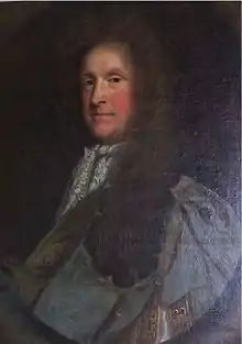 The Palmes family of Naburn can trace its ancestry through a maternal line to Robert de Todeni (died 1088), a powerful Norman baron. Todeni's importance is reflected by the 80 estates in 11 counties that he was granted by William across England. His principal Lordship was at Belvoir where he built his home, Belvoir Castle, before establishing Belvoir Priory in 1076.[3] Among Todeni's many estates was Naburn. In 1226, William Palmes of Taunton acquired the Lordship of Naburn through his marriage to Matilda, daughter or sister of Richard de Watterville; a direct descendant of Robert de Todeni from whom the land had passed to the Wattervilles. From then on, the estate continued to descend uninterrupted from father to son within the Palmes family until 1974, on the death of Commander George Bryan Palmes.[4] The Palmes family were said to have been "unique in being able to boast an unbroken heritage".[4] Edmund Burke described the family as "one of serious antiquity".[5]