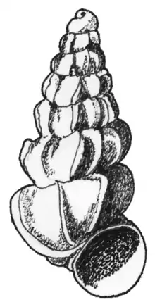| Drawing of an apertural view of a shell of Paludiscala caramba. The height of the shell is 2.5 mm. | |