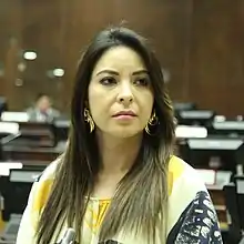 In 2016, she was the national spokesperson for the collective "Rafael Contigo Siempre",[11] which collected 1.2 million signatures to request a referendum and allow the reelection of former Ecuadorian President Rafael Correa. Although they fulfilled their objective, the group gave up their initiative at the request of Correa himself, who declined a possible candidacy.[12]