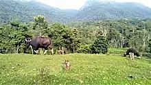 The keystone species here is the highly elusive and endangered, endemic small carnivore – the Nilgiri marten. Leopards and Indian wild dogs are sometimes sighted at dusk or dawn,[5] tigers are an important animal of the park.[6] The Old Kodaikanal–Munnar Road nearby is closed due to the growing population of wildlife such as elephants, buffaloes, lion tailed macaque, gaur and Nilgiri langurs.