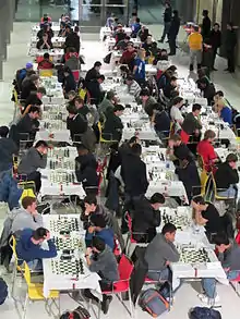 The Pan American Intercollegiate Team Chess Championship is the foremost intercollegiate team chess championship in the Americas. Hosted in part by the United States Chess Federation, the Pan-Am Intercollegiate is open to any team comprising four players and up to two alternates from the same post-secondary school (university, college, community college) in North America, Central America, South America, or the Caribbean. The Pan-Am began as such in 1946 (there had been earlier versions open to U.S. schools only), and is held annually, usually December 27–30. It has usually been held in the United States, but was hosted in Canada four times (1969, 1971, 1984, 1999). The current format is a six-round fixed-roster team Swiss-system tournament scored by team (not individual) points. Sometimes the Pan Am Intercollegiate is held as part of a larger event called the Pan American Chess Championship comprising the Pan-Am Intercollegiate, Pan-Am Scholastic Team Championship, and Pan-Am Open (for any individual).