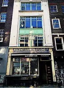 Recording studios began to be operated in the street. Regent Sound Studio at No. 4 was founded in July 1961 to serve as a unit for publishers to record their songs.[29] The studio was based above the offices of Essex Music and was frequently used by then Stones manager Andrew Loog Oldham.[30] The band recorded their first album at Regent in 1964[15] and the single "Not Fade Away" became their first major hit to be recorded there. Oldham liked the atmosphere in the studio as he could "stretch out a bit, experiment and learn from our mistakes".[31] The studios eventually expanded and moved into new premises on Tottenham Court Road, while the Denmark Street premises became the sales office.[32] They were subsequently bought by Eddie Kassner at the end of the 1960s.[33] Publishers Box and Cox had their offices at No. 7. Their greatest hit was "I've Got a Lovely Bunch of Coconuts". Southern Music, at No. 8, also had a studio in the ground floor, which was used to record Donovan's hit, "Catch The Wind".[34]