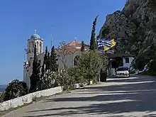 Panagia-Katakekrymeni-Portokalousa Argous (Greek Παναγία Κατακεκρυμμένη – Πορτοκαλούσα Άργους) is a former monastery and church in Argos on the slopes of Mount Larissa, roughly translating to "Our Hidden Lady the Orange-Bearer of Argos." Its official title is the Monastery of the Entry of the Most Holy Theotokos into the Temple, but it derives its popular name from the secreting of an ancient icon of Panagia (Virgin Mary) in a cave below the church, hidden by the branches of orange trees.