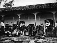 While in Panajachel, the visitors witnessed a religious ceremony by numerous pilgrims that were returning from visiting Esquipulas; pilgrims gathered in the central plaza that night around fires that they set for their food, and once they were done with their supper, they placed petates -native Guatemalan mats- on the floor in a line that crossed the plaza.[11] Each one of them grabbed a small wooden box where they produced a small Catholic saint sculpture, leaving that of the Esquipulas Black Christ, in the center.[11] Once the preparations were ready, they began the ritual by cradling from one mat to the next, always on their knees and pressing their forehead against the floor in front of each saint; every man did this for several times and in the end, they all gathered around the Black Christ and sang a hymn for about thirty minutes; once done, gathered their belongings and went to sleep on the plaza floor.[8] Anne Maudslay tells in her book that even though this seemed like a Catholic ritual, it was, in fact, a Mayan one; several priests that they found during their journey told them that they were not sure that the natives had really absorbed the Catholic faith that the conquistadors tried to instill in them for centuries.[8]