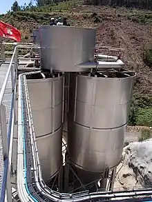 The drainage water of the Panasqueira Mine is conducted to the surface through the Salgueira Gallery. This water has a pH of about 4 and contents heavy metals above the emission limit values. In the 1950s a wastewater treatment plant was installed, which, through alkalization with addition of lime, treats the water until it precipitates the heavy metals into sludge. This is then stored in the tailings dams. The treated water is pumped for use as industrial water in both the plant and the mine. Since the 50s, the mine has expanded and the effluent flow increased proportionally. In 2011 the water treatment plant was expanded and improved to treat all the water coming from the mine, the plant and the runoff of tailings dam. The non-reusable effluent resulting from the treatment is discharged to the Bodelhão Stream, complying with the monitoring program defined in Environmental License, with monthly reporting to the authorities. The plant reutilizes almost all the water that it uses, due to the use of several thickeners installed for this purpose. The slimes resulting from water treatment, as well as the finer fraction of the plant tailings, are stored together in tailings dams. Any effluent from these dams is returned to the water treatment plant. The tailings in granulometry of sand and gravel are sold as inert materials for civil construction. The part that is not sold serves as a wall to the slimes dams.[14]