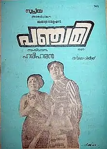 Panchami is a 1976 Indian Malayalam-language film written by Malayattoor Ramakrishnan, directed by Hariharan and produced by Hari Pothan under the banner of Supriya. The film stars Prem Nazir, Jayan, Jayabharathi and Adoor Bhasi in lead roles. The film has musical score by M. S. Viswanathan, while cinematography was handled by Melli Irani. The film was a commercial success at the box office. The film is also noted for being Jayan's breakthrough role.[1][2][3][4]