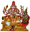 The panchavimshatimurti (Sanskrit: पञ्चविंशतिमूर्ति, romanized: Pañcaviṃśatimūrti, lit. 'twenty-five forms') is the representation of twenty-five forms of Shiva in Hindu iconography.[1] These forms are described in the Shaiva Agamas of the southern Shaiva Siddhanta sect of Shaivism. The Sritattvanidhi calls these the panchavimshatililamurti (twenty-five sportive forms).[2] These forms are based on the Puranas and the Itihasas, in which the theme of Shiva's divine play is explained with numerous narratives. Most of these forms are featured in South Indian temples as the main images of the sanctum or sculptures and reliefs in the outer walls of Shiva temples.[3]