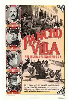 Pancho Villa is a 1972 American, British and Spanish spaghetti western film directed by Eugenio Martín. It takes as its starting point the life and legend of the Mexican bandit-revolutionary of that name, but has no other basis in historical fact. The film features Telly Savalas, Clint Walker, Chuck Connors and Anne Francis.[1] Shot in Spain, this "brawling spectacle"[2] has an often-overlooked light-comedy satirical facet, which to this day often confuses viewers. The storyline was developed during the Vietnam War and reflected certain antiwar sentiments in an American society.[3] The title song "We All End Up the Same", with music by John Cacavas and lyrics by Don Black, is sung by Telly Savalas.[4]