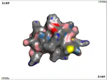Pi3 and Pi2 both contain 35 amino acid residues. Pi3 has the same primary structure as Pi2 except for a single amino acid caused by point mutation of the seventh amino acid Pro7, which is neutral to Glu7, which is negative.[7] As they differ by a single amino acid, they are used to analyze the structure-function relationship. The secondary structure shows a 310 helix whereas Pi2 has alpha helix.[1] Also, the crucial residue of the functional dyad, Lys24 (K27) is located very close to Glu7 (P10E) in Pi3.[1][9]