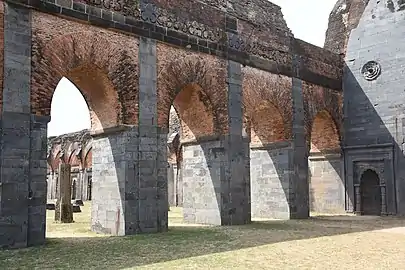 ![]() Mihrabs, arches and pillar remnants in Adina Mosque | |