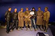 This approach required a certain technique of filming. In order to move the toy tank were like moving the present, it was necessary to shoot it four times faster, and then slow down the received frames. The camera, accordingly, had to be moved four times faster than on the field, which can not be done with hands. Therefore, in the pavilion shootings for camera control, the operators used the robotic arm KUKA Agilus, provided and programmed with the help of specialists from the Research Research Institute of Robotics. For close-up shots, a full-size mock-up of the PzKpfw IV tank was built, the cabin of which was recreated on Lenfilm as a separate capsule on the springs, which made it possible to achieve realistic pitching during shooting. Currently, the layout is kept in the Museum of the Karelian isthmus in the Vyborg.