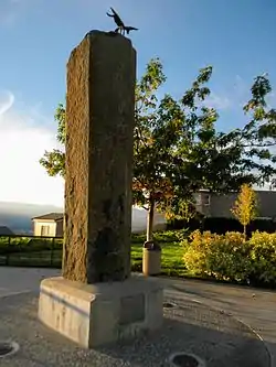 The memorial is northeast of East Wenatchee and it consists of a 14-foot-high (4.3 m), 14-ton (13 t) basalt column atop a concrete base. The column is topped by 36-inch (91 cm) wings made of aluminum.