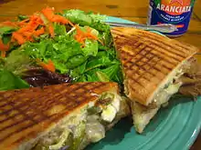 ![]() A typical panini with salami, mortadella, tomatoes, and lettuce | |