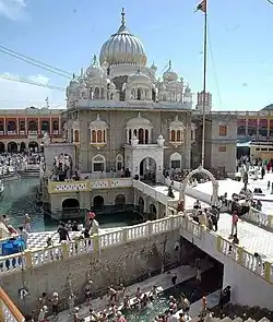 Gurdwara Panja Sahib (Punjabi: ਗੁਰਦੁਆਰਾ ਪੰਜਾ ਸਾਹਿਬ (Gurmukhi), گردوارا پنجا صاحب (Shahmukhi); Urdu: گردوارہ پنجہ صاحب) is a famous gurdwara located in Hasan Abdal, Pakistan. The shrine is considered to be particularly important as the handprint of the founder of Sikhism, Guru Nanak, is believed to be imprinted on a boulder at the gurdwara.