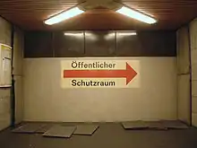 Like the station Siemensdamm (Berlin U-Bahn), the station is constructed as a "Multi Purpose Facility". It is prepared and partially stocked to be used as an NBC shelter. It has an emergency kitchen and a filtered ventilation system.[1] It is specified to sustain 3339 people for 14 days.[2]