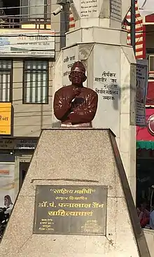 ![]() Bust of Pt Pannalal Jain holding a pen, in Namakmandi, Sagar. | |