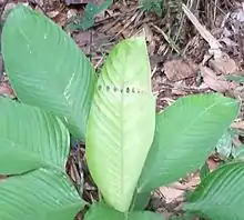 Panoploscelis are terrestrial, predatory insects which dwell in the humid understory of the Amazon rainforest. They are nocturnally active, foraging for food at night.[11] They are mostly herbivorous, although opportunistic carnivory has been observed;[3] their diet includes leaves and small insects.[4] They often leave a characteristic pattern of holes, arranged in a straight line horizontally across leaves upon which they have fed. They typically return just prior to dawn to a designated and well-concealed resting place within vegetation or leaf litter, where they remain throughout the day.[15]