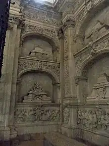 The Royal Pantheon occupies the last section of the northern side of the chapel of Nuestra Señora del Rey Casto in the Cathedral of Oviedo. It is the most sumptuous part of the cathedral complex, richly decorated in carvings of plants and heraldic emblems.